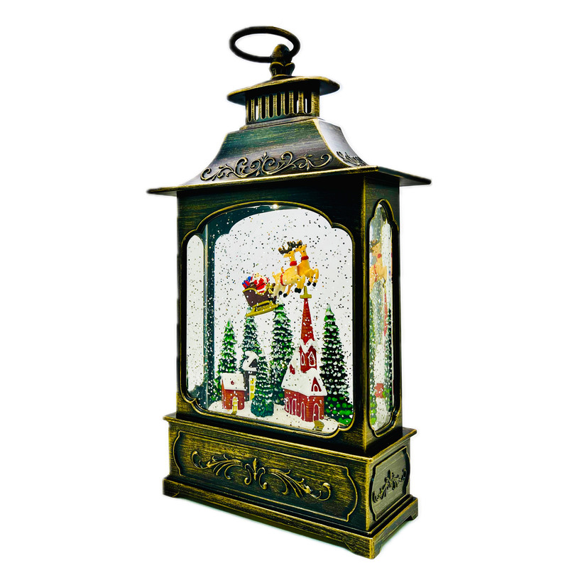 گوی موزیکال مدل پمپی لایت باکس آکواریومی طرح فانوس سورتمه بابانوئل و کریسمس کد P4203