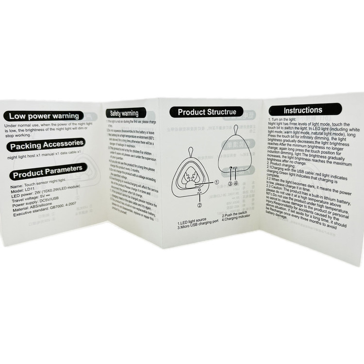 -دارای بند نگه دارنده و آویز -دارای سه حالت نور (سفید، آفتابی و مهتابی) -دارای کابل شارژ -دکمه لمسی برای تعویض نور و روشن و خاموش کردن - دارای کلید روشن خاموش کلی -جنس لامپ سیلیکونی و نرم