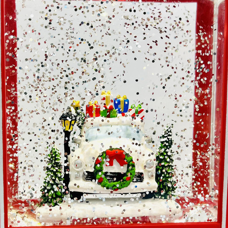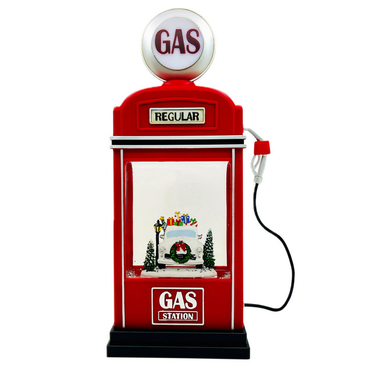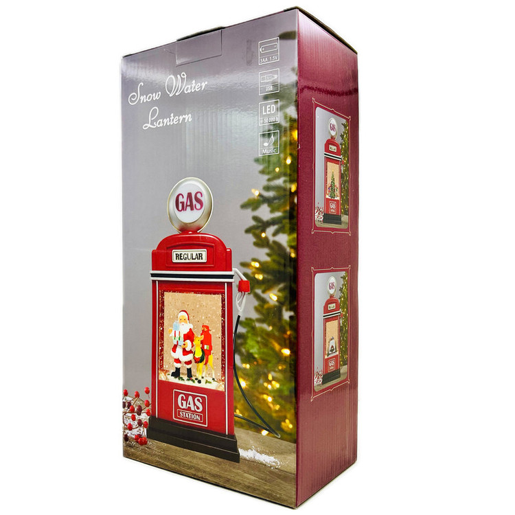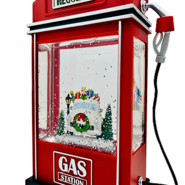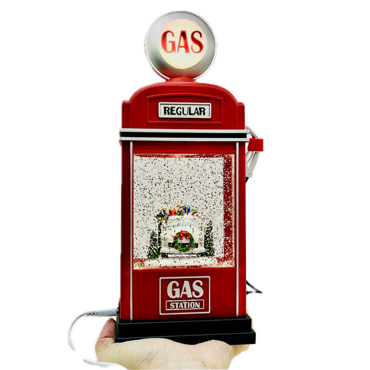 گوی موزیکال مدل پمپی ماشین هدایای بابانوئل در پمپ بنزین طرح کریسمس کد P331