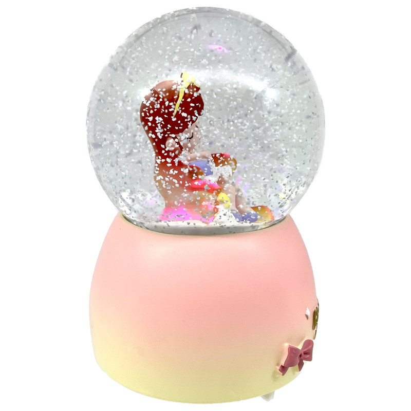 توضیحات عروسک : بدنه دارای طرح برجسته است و با روشن شدن گوی، موهای دخترک شروع به تغییر رنگ می کند.