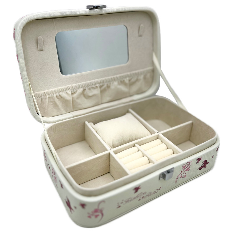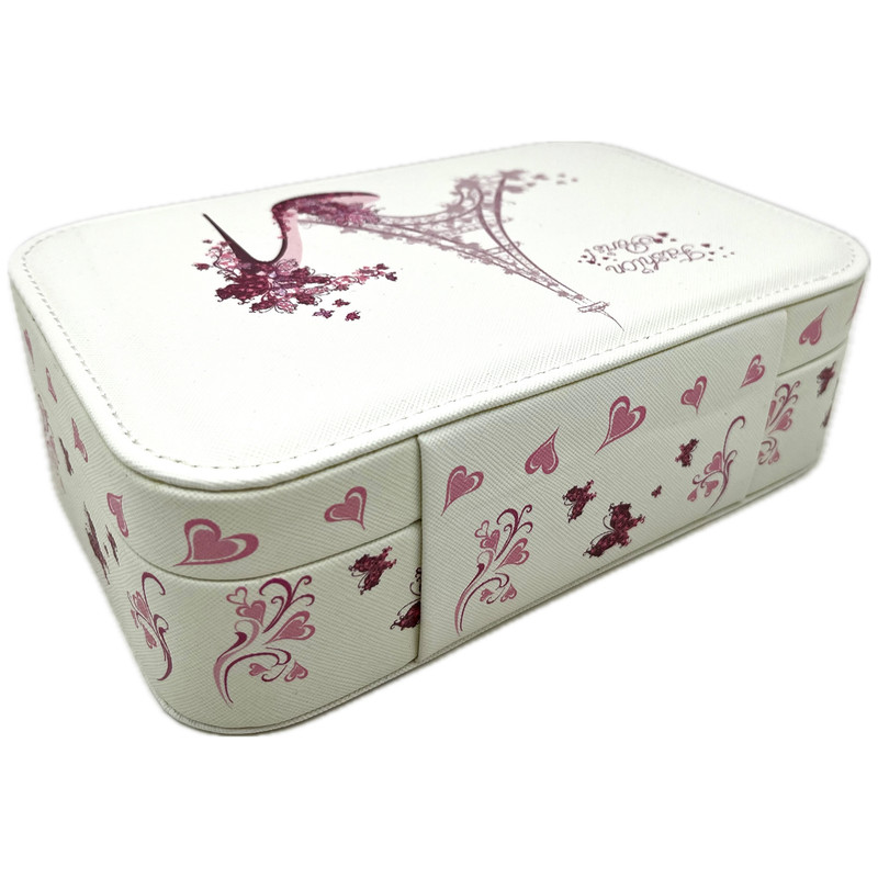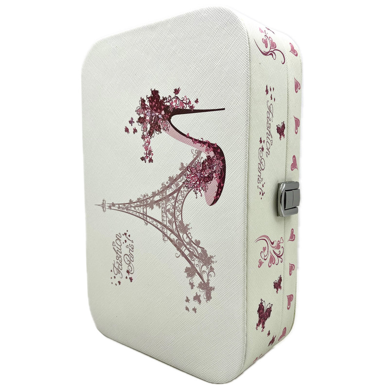 ابعاد22.3x14.7x7.1 سانتیمترسایر توضیحات- دارای طرح در رو و زیر و دور جعبه - دارای آینه داخلی - رویه چرم مصنوعی - داخل مخمل - دارای جعبه - وزن محصول: 500 گرمجنسچرم مصنوعی
