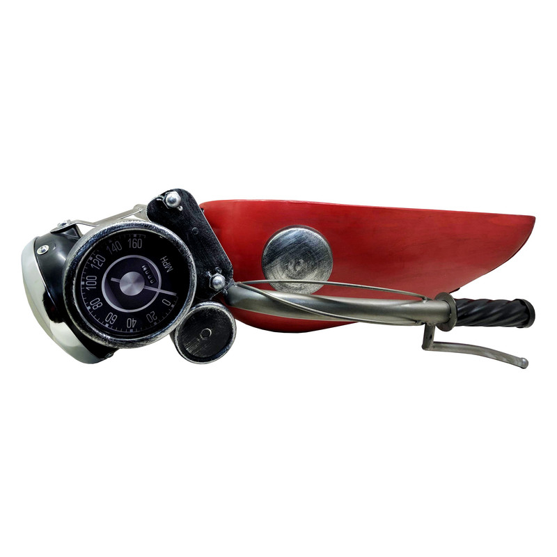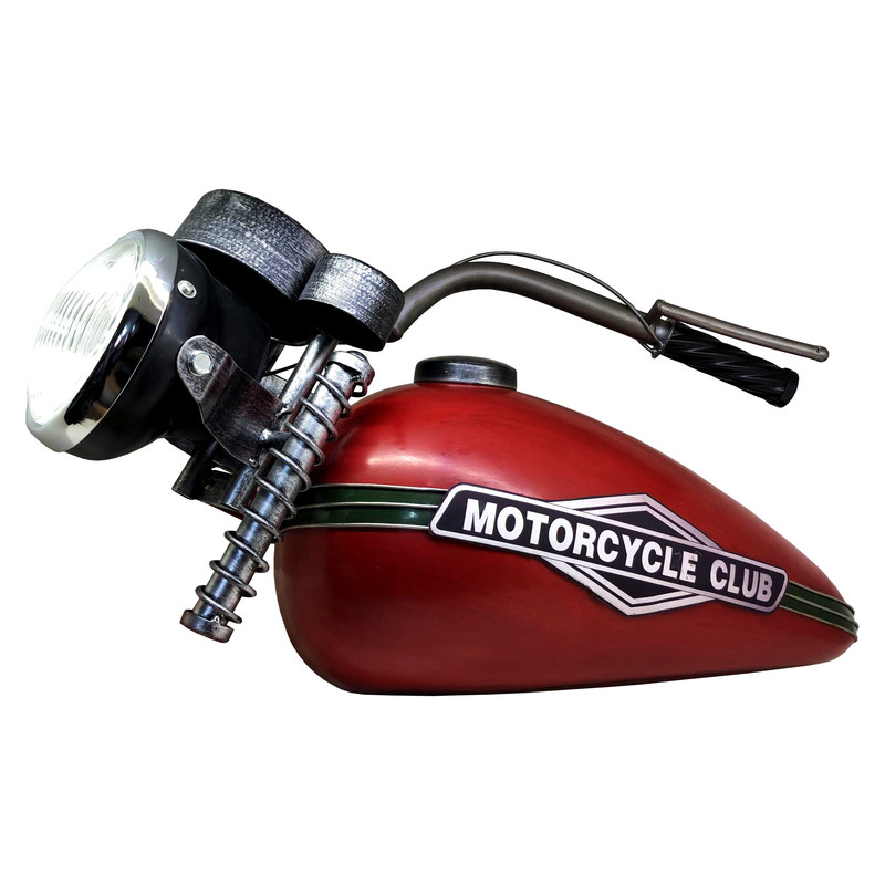 ابعاد56x28x26 سانتیمتروزن3400 گرمجنسفلزسایر توضیحاتماکت دکوری طرح نیمه یک موتورفلزیست که به دیوار متصل میشود. چراغ جلوی موتور نیز بوسیله باطری روشن میشود.رنگقرمز