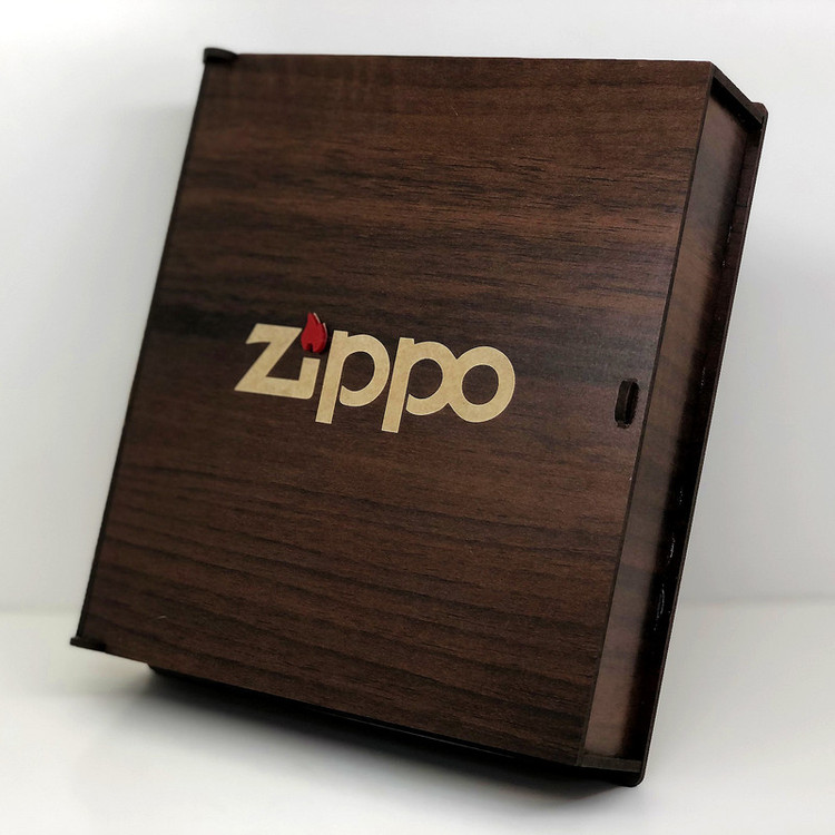 سایر اقلام همراه محصول: جعبه هدیه چوبی زیپو به همراه فندک اصلی زیپو کد ۴۹۱۴۶ – Zippo Reg Iridescent Matte و بنزین زیپو و سنگ فندک
