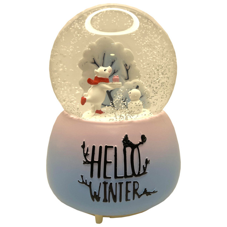 گوی موزیکال برفی چراغدار و پمپی میباشد با قابلیت پمپاژ برف ، پخش 7 موزیک متفاوت و بازی با نورهای رنگی