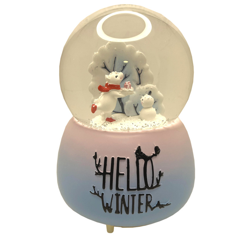 گوی موزیکال برفی چراغدار و پمپی میباشد با قابلیت پمپاژ برف ، پخش 7 موزیک متفاوت و بازی با نورهای رنگی