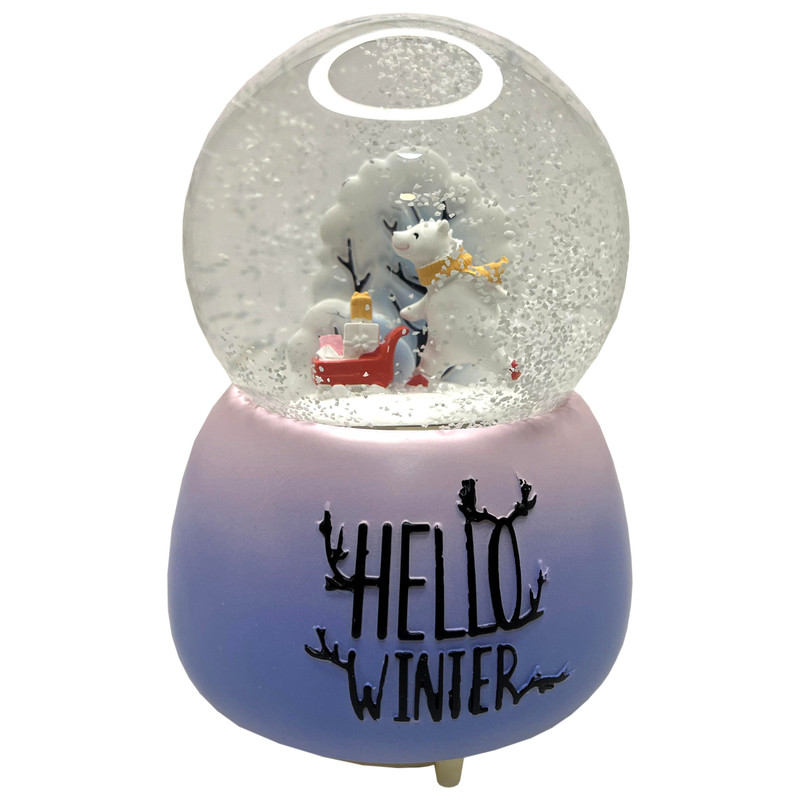 گوی موزیکال برفی چراغدار و پمپی میباشد با قابلیت پمپاژ برف ، پخش 7 موزیک متفاوت و بازی با نورهای رنگی